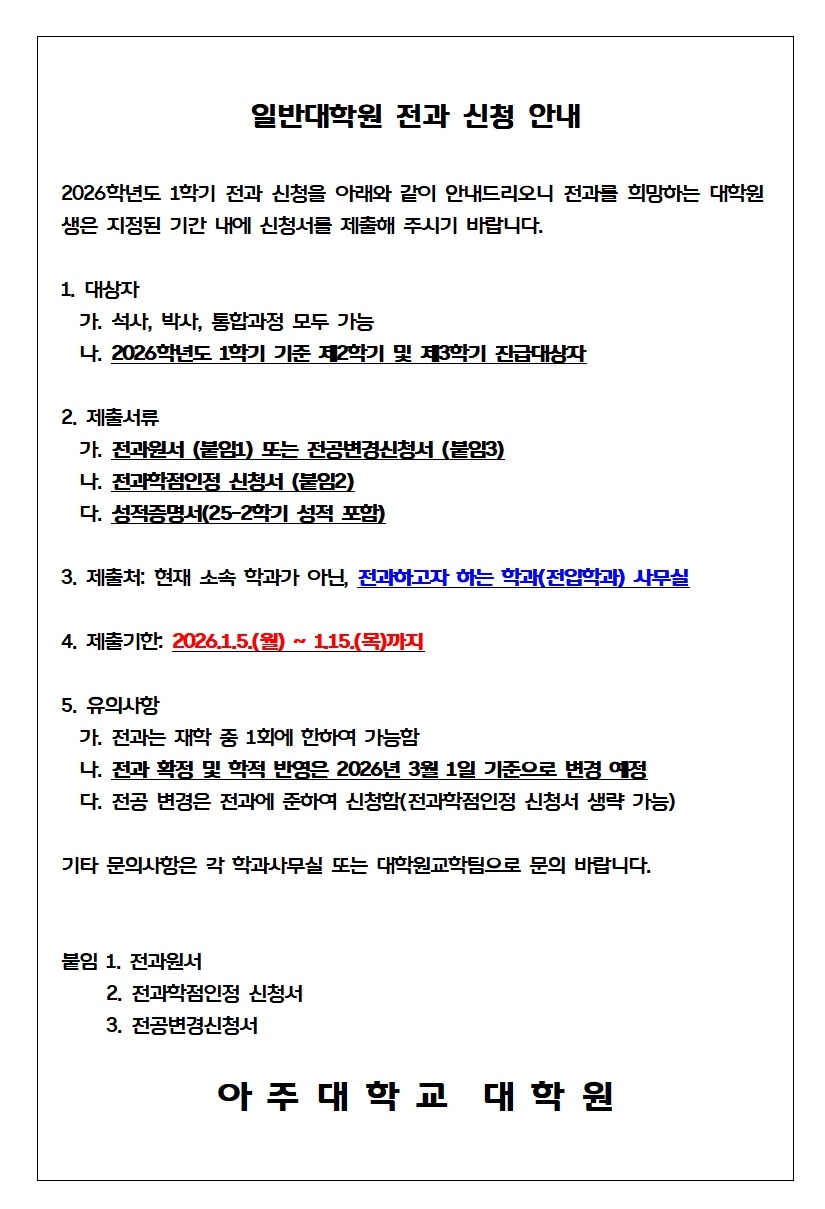 [공지] 2026-1학기 전과(전공변경) 신청 안내