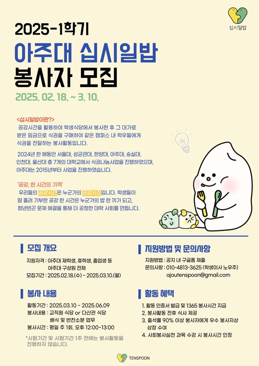 [십시일밥] 2025학년도 1학기 십시일밥 봉사자 모집 안내
